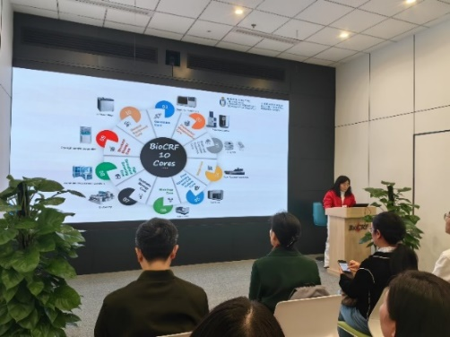 港科大(广州)是一所内地与港澳台合作办学高等学校,其生物科学中央实验室(下称“BioCRF(GZ)”)涵盖了生物学研究的众多领域,已建设组织学、成像、脑与认知、蛋白质组学与代谢、高通量药物筛选等10个设施先进的实验平台。交流会上生命科学与生物医学工程学域主任齐众教授及BioCRF(GZ)阚光嫣副主任详细介绍了BioCRF(GZ)平台的设备配置和服务理念,实验中心教职工党支部张以顺书记做了生命科学仪器设备共享平台建设与运行管理经验分享。