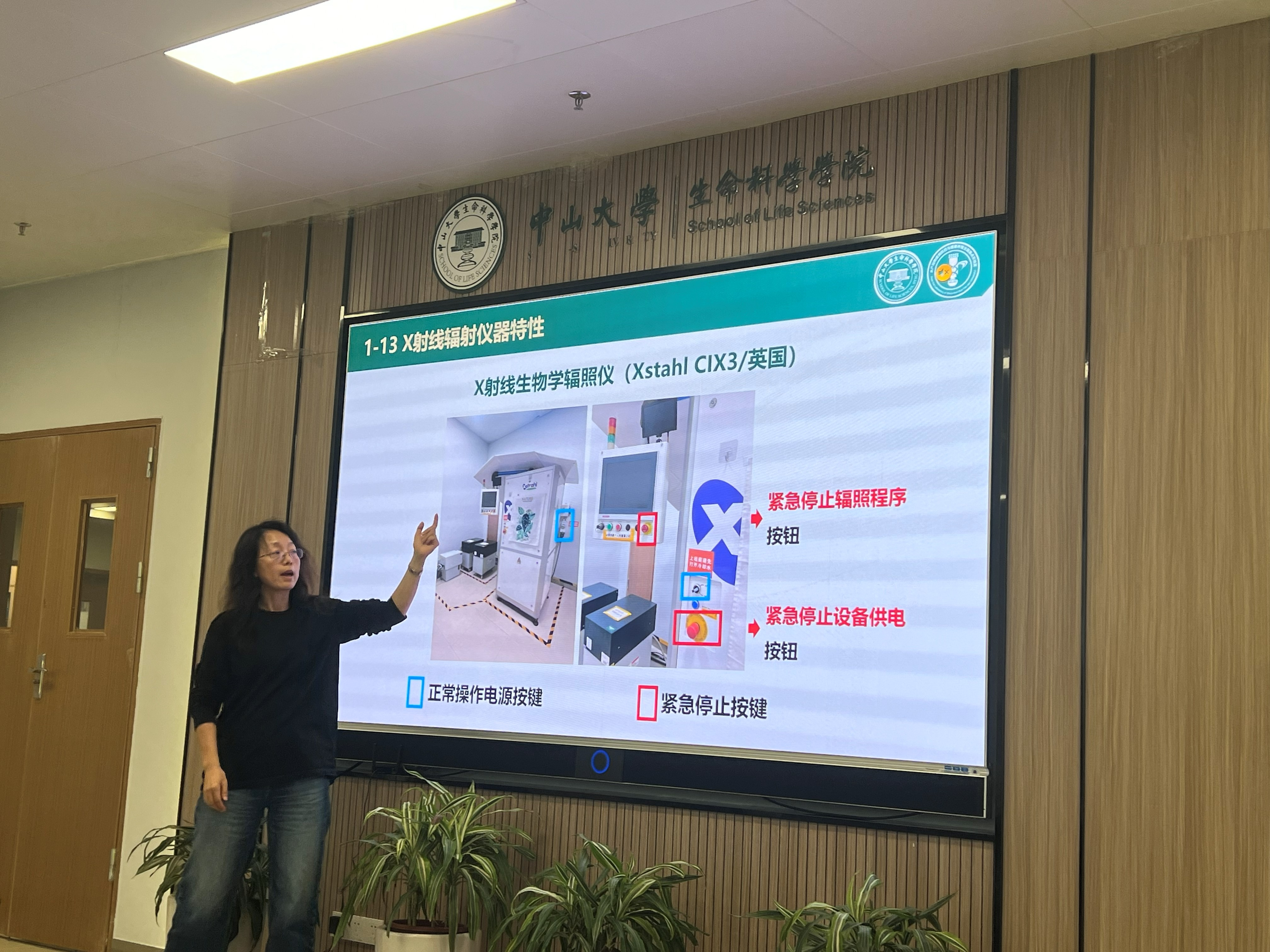 培训环节中,顾南南老师系统回顾了辐射安全的基本原理,重点解读了以X射线为代表的电离辐射特性、应用及其潜在风险。培训详细阐述了辐射装置,特别是X射线辐照仪的关键安全设计,如安全连锁装置与紧急停止按钮的至关重要性与正确操作规范,为后续演练奠定了坚实的理论基础。