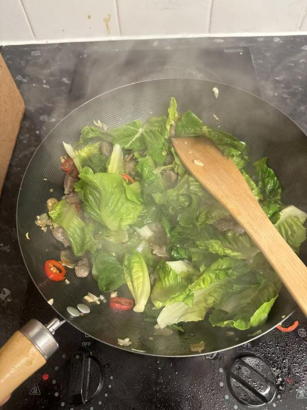 当然,也偶有外出点菜改善伙食的日子。作为中国人,虽也能欣赏牛扒汉堡的滋味,但终究还是不免更青睐中餐。第一次前往中餐馆品尝到番茄牛肉、水煮青菜这类家常菜肴时(图9),竟恍惚之间有重返穗城的感觉,莼鲈之思油然而起。