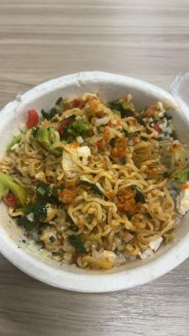 在饮食上,学校食堂为自助形式,有现做汉堡、沙拉、披萨等,但需18-20美元一餐,实非日常负担的起的。除食堂外,另有一些形似快餐店之类的档口,出售披萨、炸鸡、三文治等,但少算也需十多美元方能吃饱(图7)。而住所也没有太好的烹饪条件和食材贮藏条件,无法自行解决。因此更多时候,则是从当地超市Walmart、Costco等大量囤积冻品、方便食品(图8),应付过去。虽然可以果腹,但在营养均衡、口味适宜方面则只是差强人意。