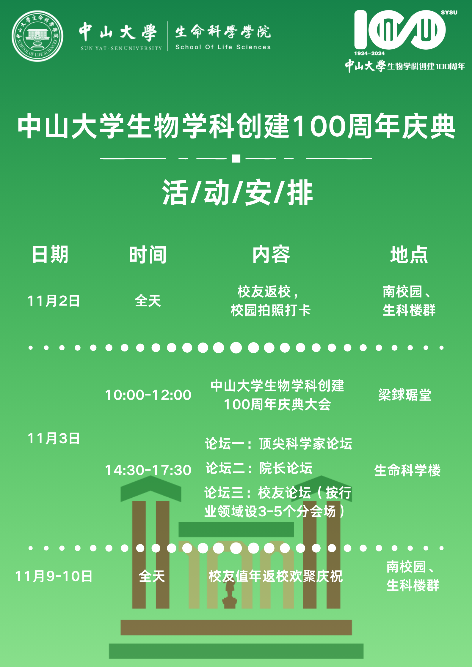 中山大学生物学科创建100周年庆典公告