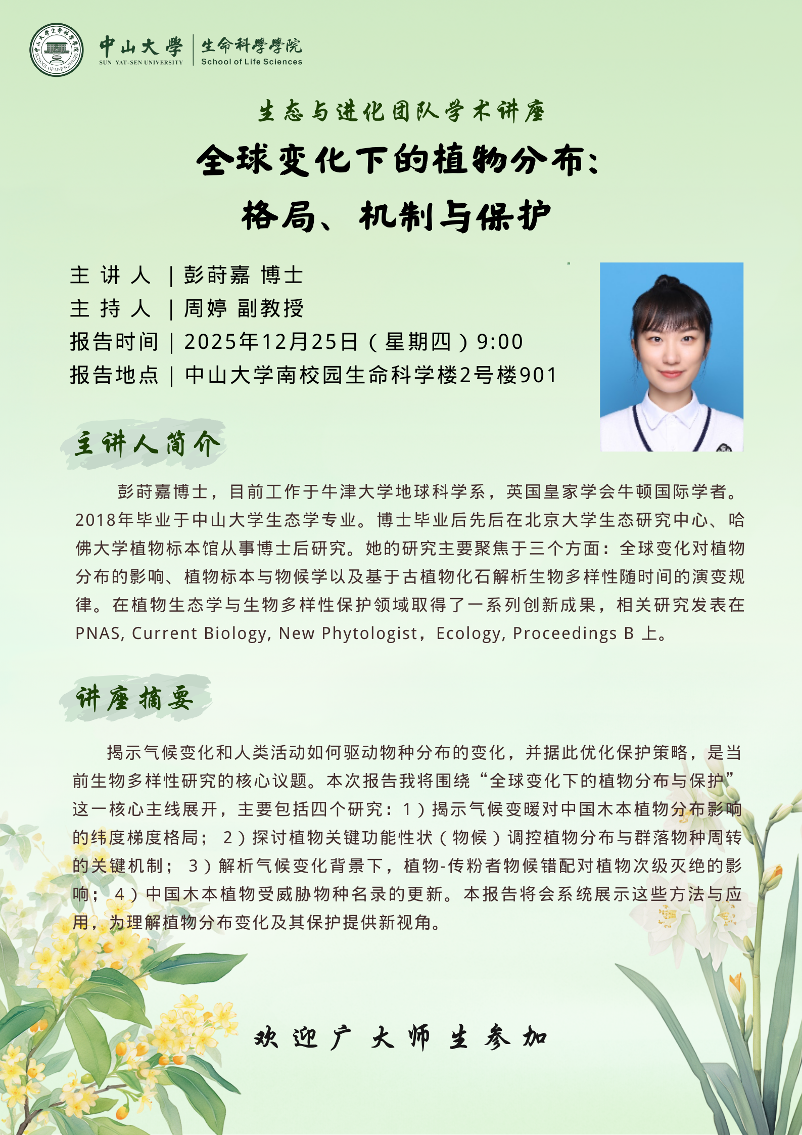 2025年12月25日生态与进化团队系列讲座:全球变化下的植物分布:格局、机制与保护