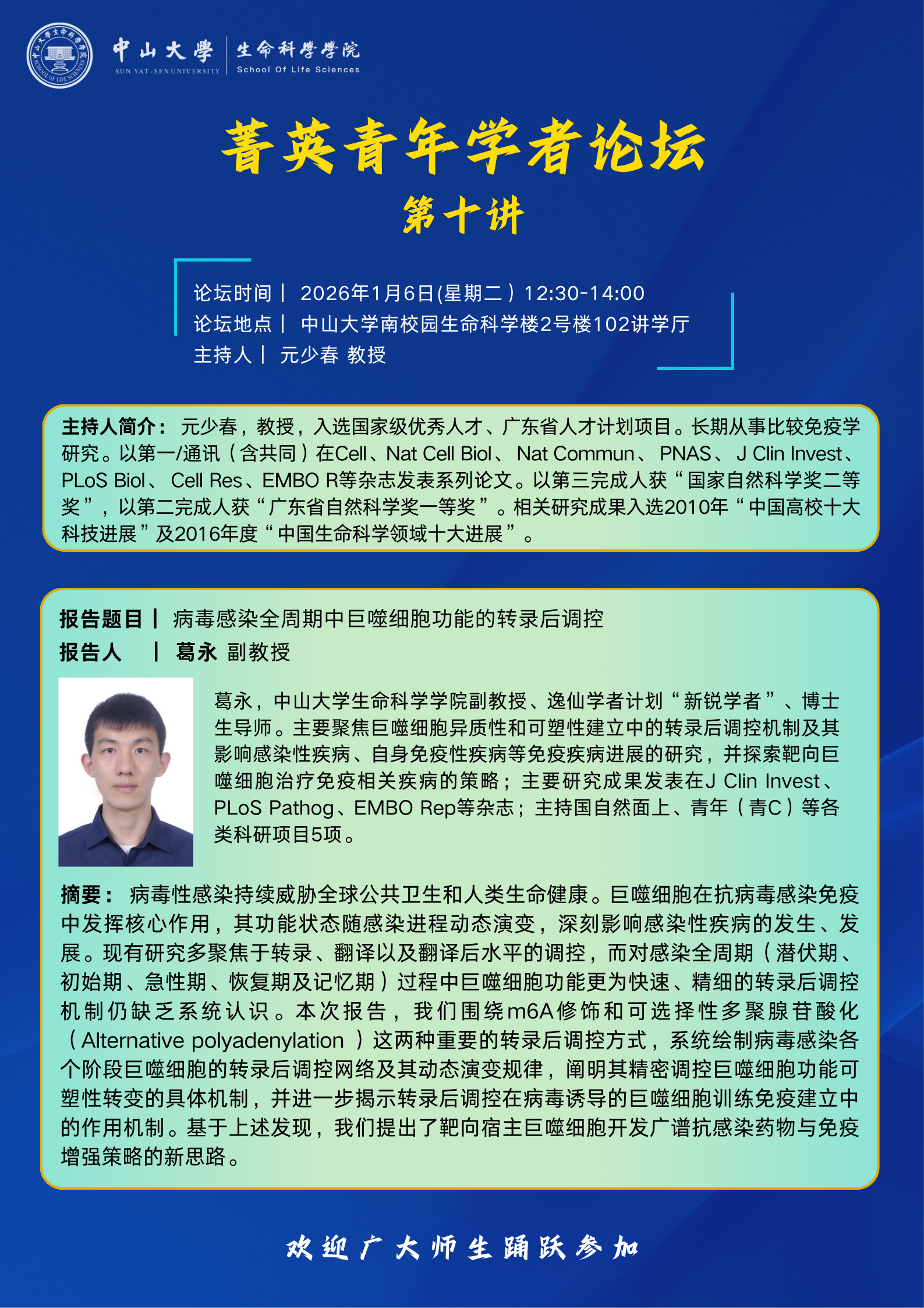 2026年1月6日菁英学者论坛第10讲:病毒感染全周期中巨噬细胞功能的转录后调控