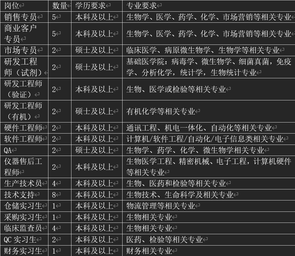 1、分子生物学类或医药类相关专业的优秀本科应届毕业生;