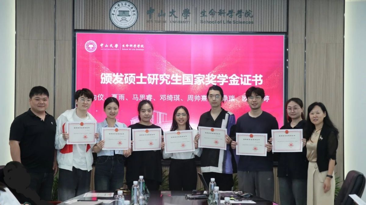 接下来,张斯虹书记和邝栋明副院长为向佼、夏雨、马思睿、邓绮琪、周帅熹、刘鼎瑞、欧阳玉婷共七位同学颁发硕士研究生国家奖学金证书,并合影留念。
