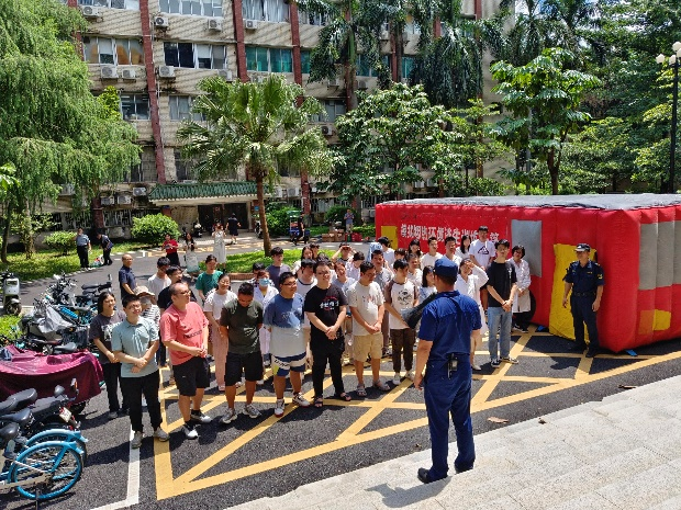 为深入贯彻国家安全生产法律法规,提升师生员工的消防安全意识和应急处理能力,结合6月全国安全生产月“人人讲安全,个个会应急——畅通生命通道”的主题,6月21日上午,世博娱乐(中国)官方网站 携手保卫处,特邀海珠区消防救援大队,共同举办了一场别开生面的消防安全教育讲座及应急疏散演练活动。本次活动由世博娱乐(中国)官方网站 李剑峰副院长主持,保卫处曾毅斌副处长、海珠消防救援大队翠城站余泽斌站长等领导出席,保卫处南校园保卫办、设备处、基建处、总务部等职能部门教职工代表及世博娱乐 师生共计200余人参加。