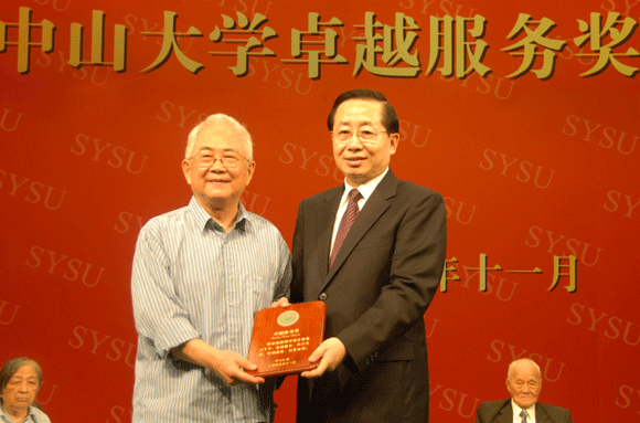 中山大学领导为傅家瑞教授颁发第一届“中山大学卓越服务奖”