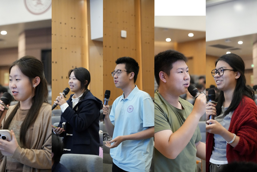 本次分享会——圆桌对话,庞义教授、李鸣光教授和崔隽教授与学生代表姜子煜、李亦蒙同学面对面交流,围绕大学适应、科研计划、成长规划等核心话题展开了深入的交流。